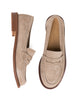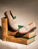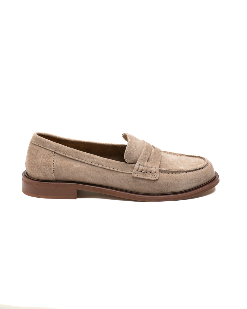 Mocassino in morbido camoscio avorio con suola in cuoio. Prodotto artigianale italiano. Spedizione gratuita in Italia.