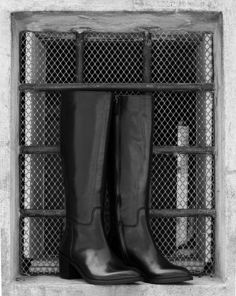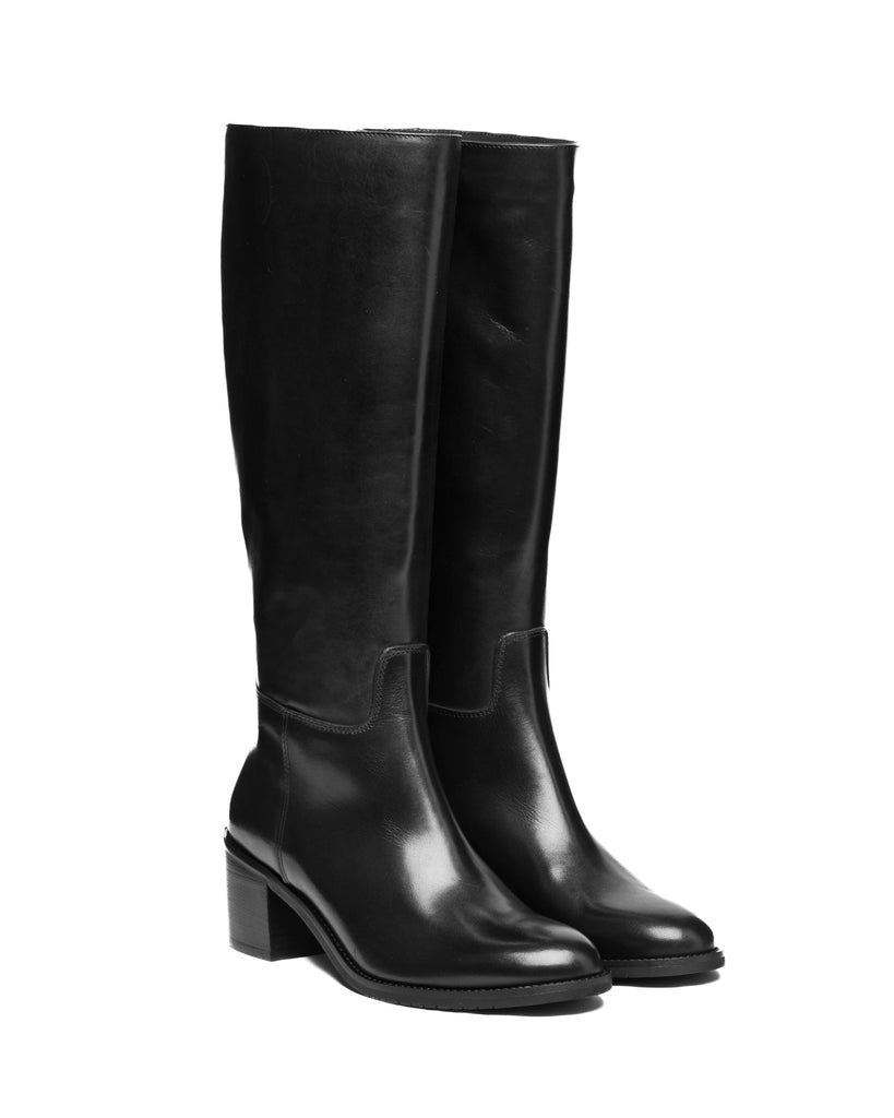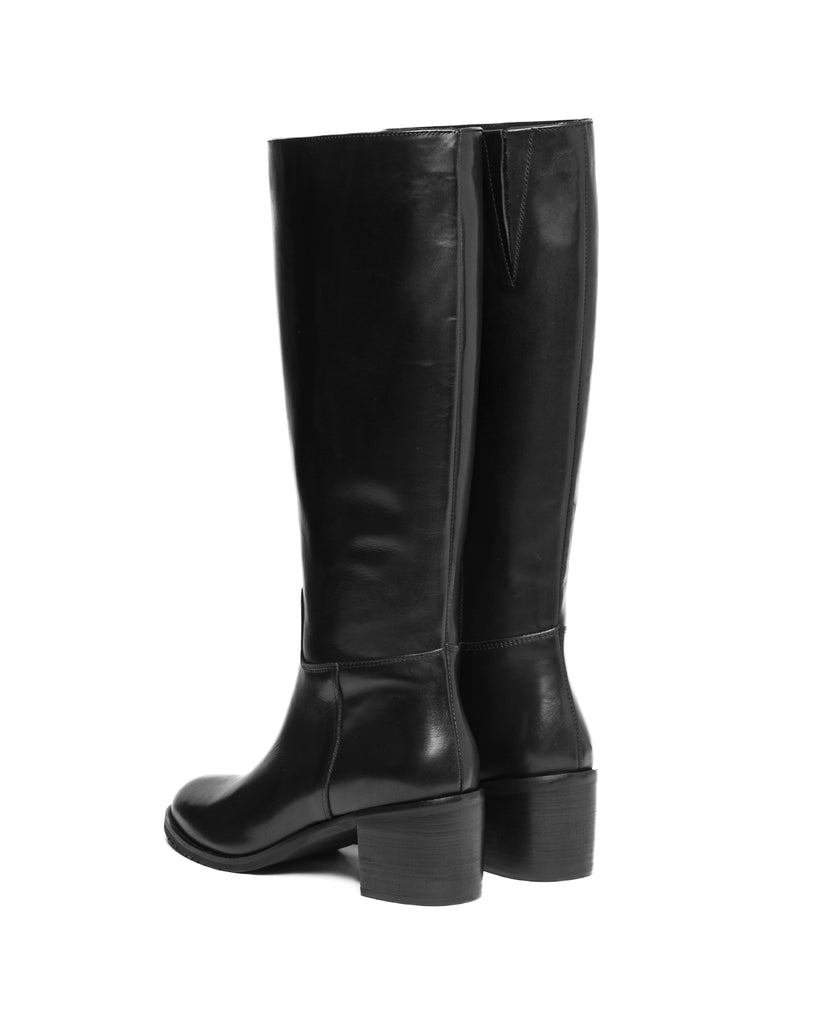 Stivale cavallerizzo in nappa nera, punta tonda, calzata con zip laterale.