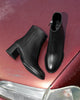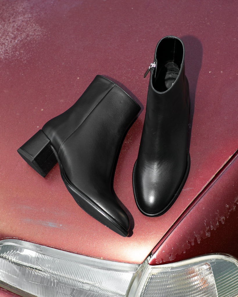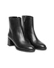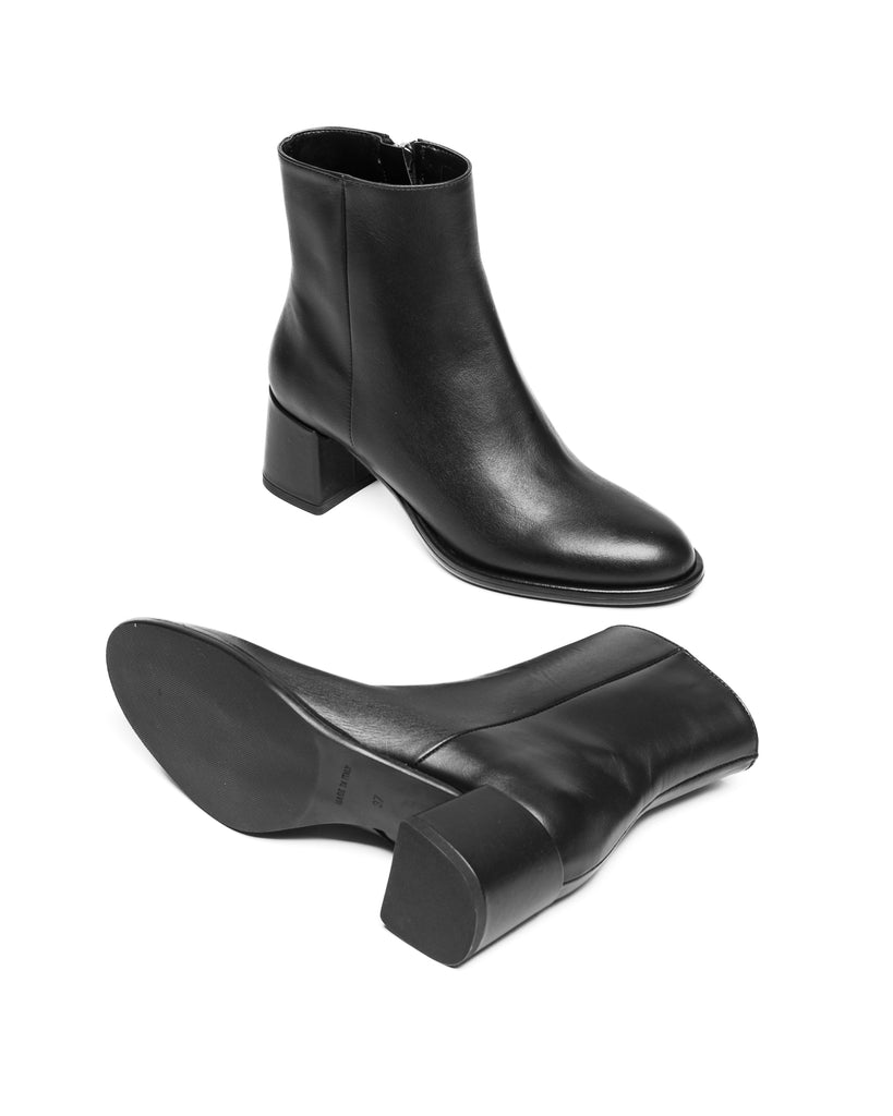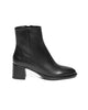 Tronchetto realizzato in morbida nappa nera, punta tonda, tacco largo medio grosso rivestito, con cerniera laterale per una calzata agevole.